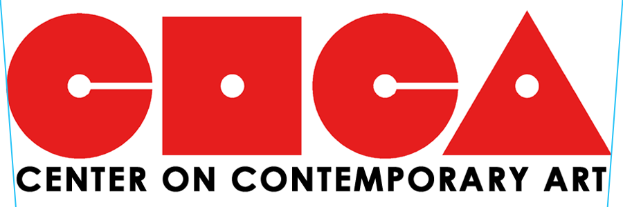 The earliest iterations of the logo that I have been able to find (including the first) have no text below the logo at all. The logo was expected to stand on its own, and the name "Center on Contemporary Art" was somewhere else on the page. From time to time, text appeared under the logo, but not in the form we know it today. Often it was a date, or the name of an event, venue, or address. Occasionally, it was all of the above, in a block.