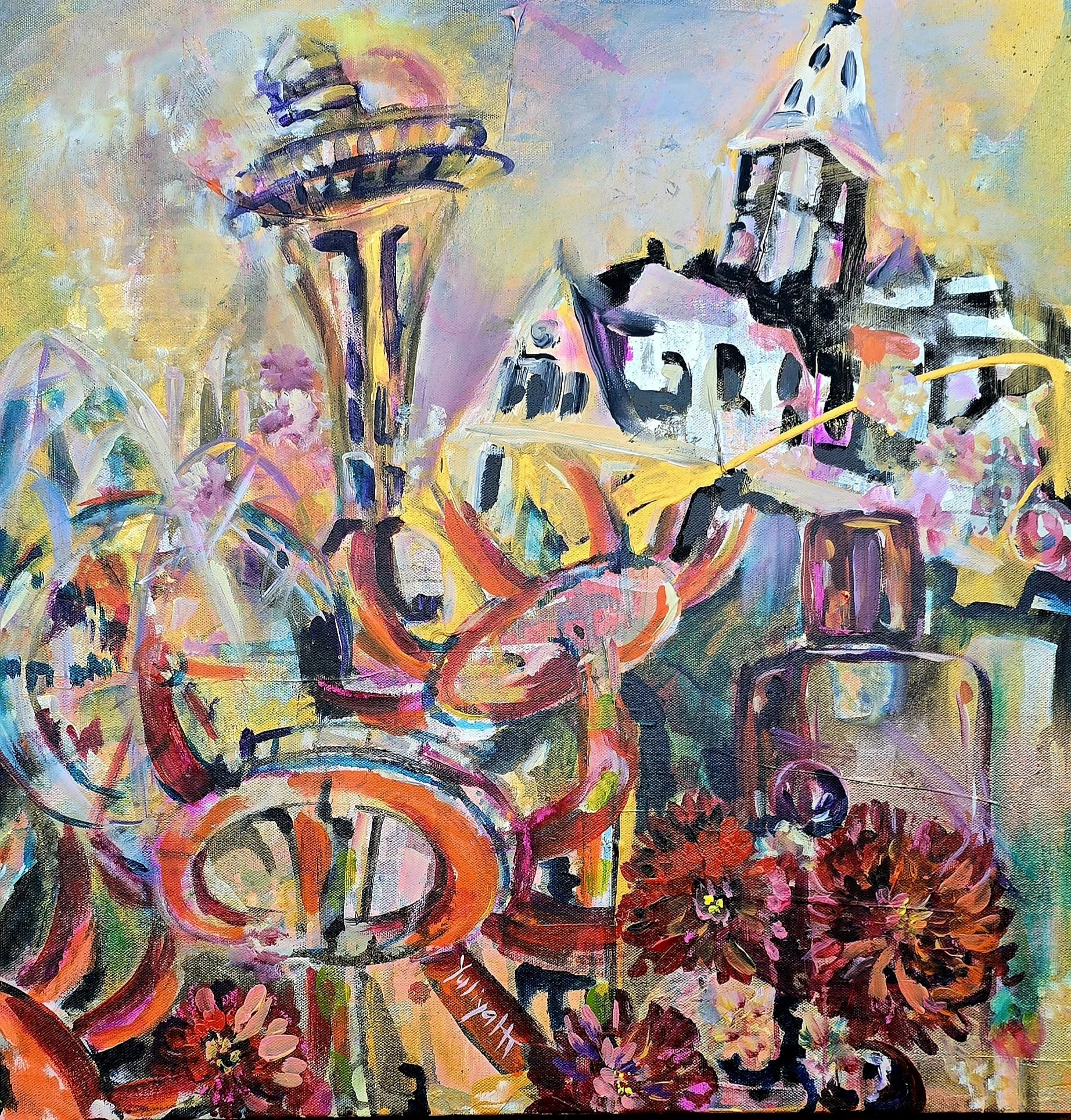 I use recognizable anchors—the sharp silhouette of the Space Needle or the deep sea-hues of Seattle—to construct a visual stage where grit and luxury collide. While symbols like the cardinal feather hint at new beginnings, they are not clues to be solved; they are structural elements of the seduction that pulls the viewer in. I build, bury, and carve through the medium to create a tactile history that refuses to explain itself. The story isn’t in the "why"—it is because.